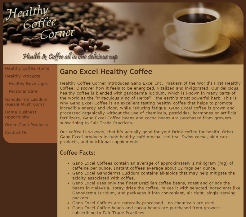 Healthy Coffee Corner is an informational site for a company selling healthy coffee and other healthy products. We created the design, helped them developer their content and optimize for search engines and provide ongoing support and updates.